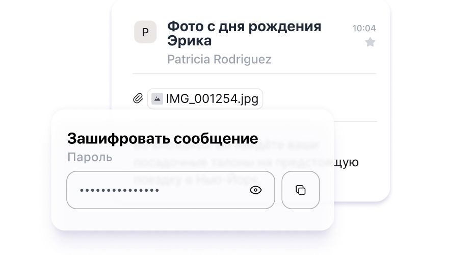 Чтобы безопасно отправлять конфиденциальную информацию своим контактам, даже если у них нет Proton Mail, используйте пароли и устанавливайте срок действия писем.