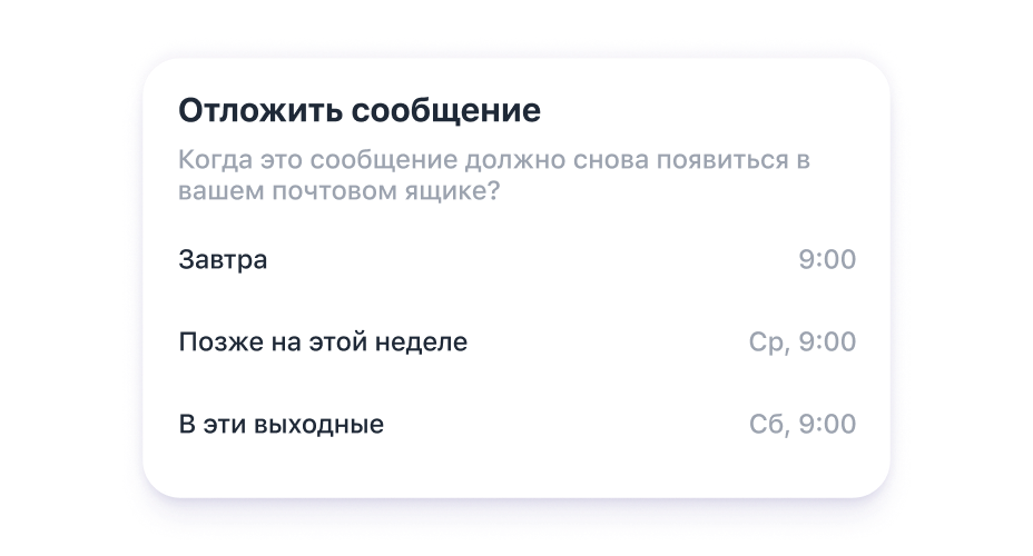 Планирование, отмена и откладывание электронных писем