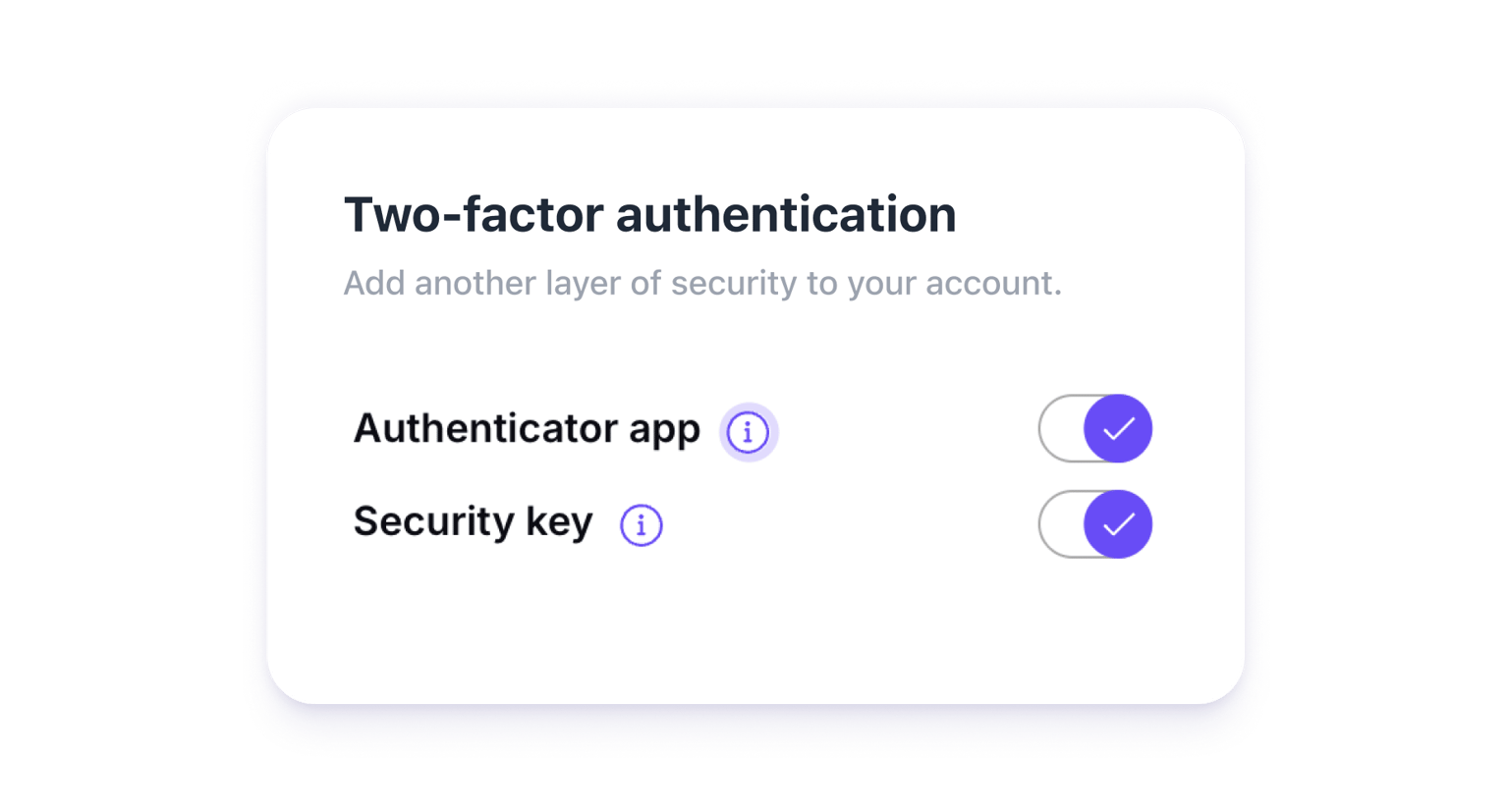 Позаботьтесь о безопасности своего аккаунта Proton. Вы можете установить вход с двухфакторной аутентификацией и подтверждать личность с помощью аппаратных ключей. Мы поддерживаем YubiKey и другие типы ключей U2F/FIDO2.