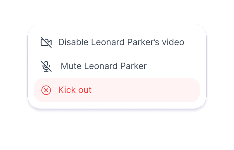 Возьмите свою встречу под контроль. Не позволяйте новым участникам присоединяться, выключайте звук, останавливайте видеопотоки или мгновенно удаляйте участников с помощью элементов управления в один клик.
