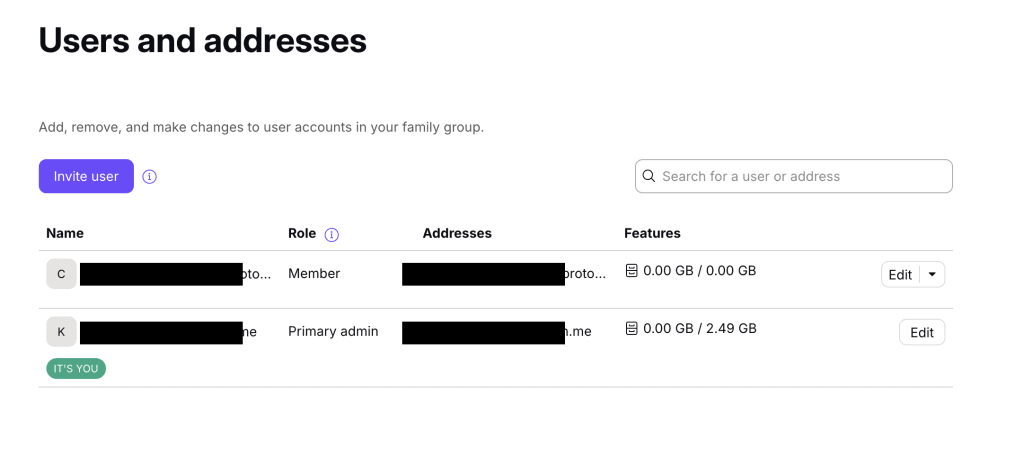 - If you’re inviting an existing Proton user, enter their email address. If you’re inviting someone who still needs to get a Proton account, help them set up a Proton account first.