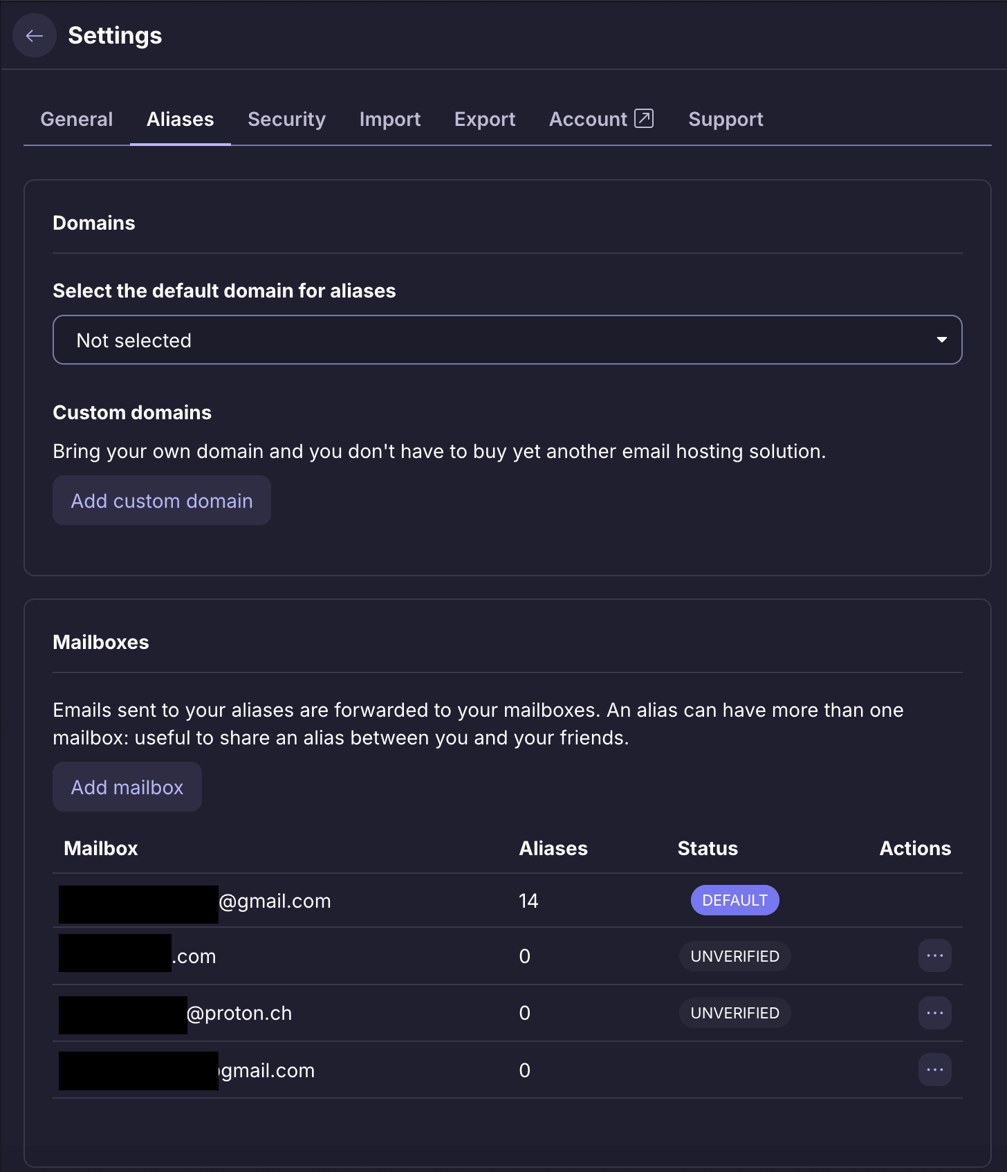 - To add a custom domain, select Settings ⚙ → Aliases.
