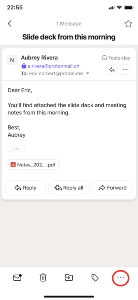 1. Open an email and press the … icon in the toolbar.