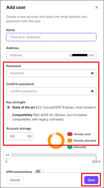 In the last step of the setup process, you can create new users for your custom domain or new addresses for existing users.