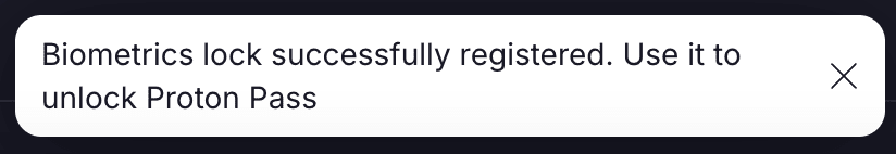 Follow the steps to add your biometric login, and you’ll receive a prompt at the bottom of your screen that you’ve been successful.