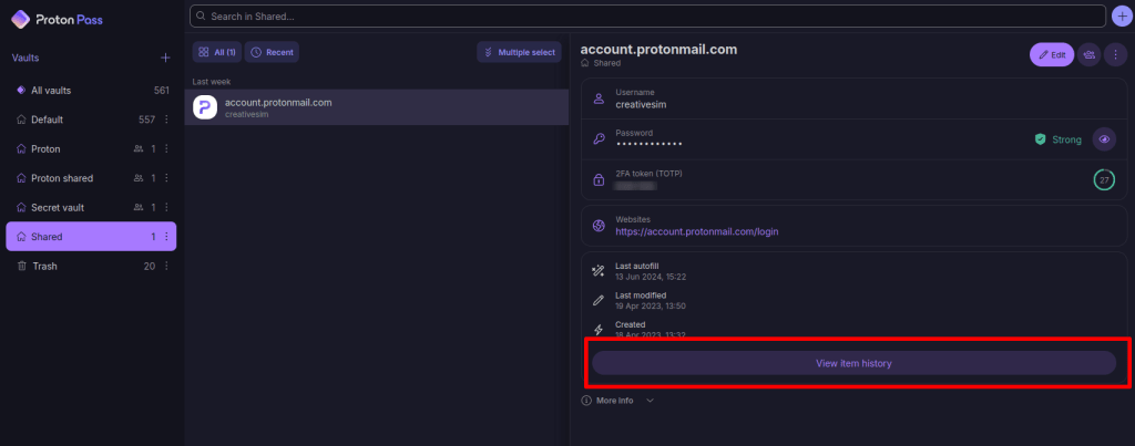 If you have a paid Proton Pass account, you can view each item’s history. To do this: