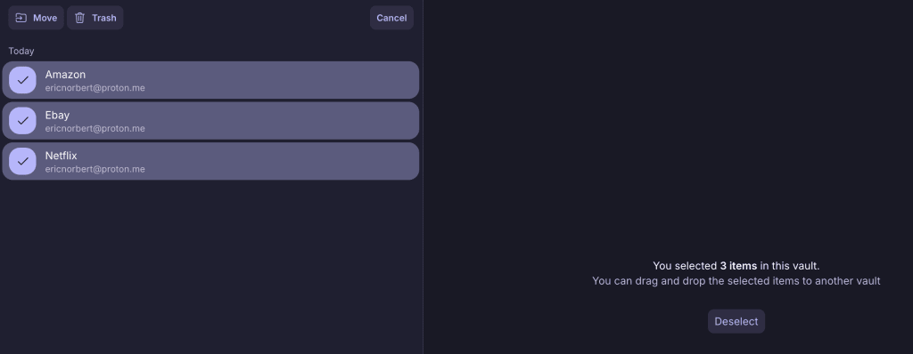 1. To move items to another vault, you can either drag and drop them directly or select Move.