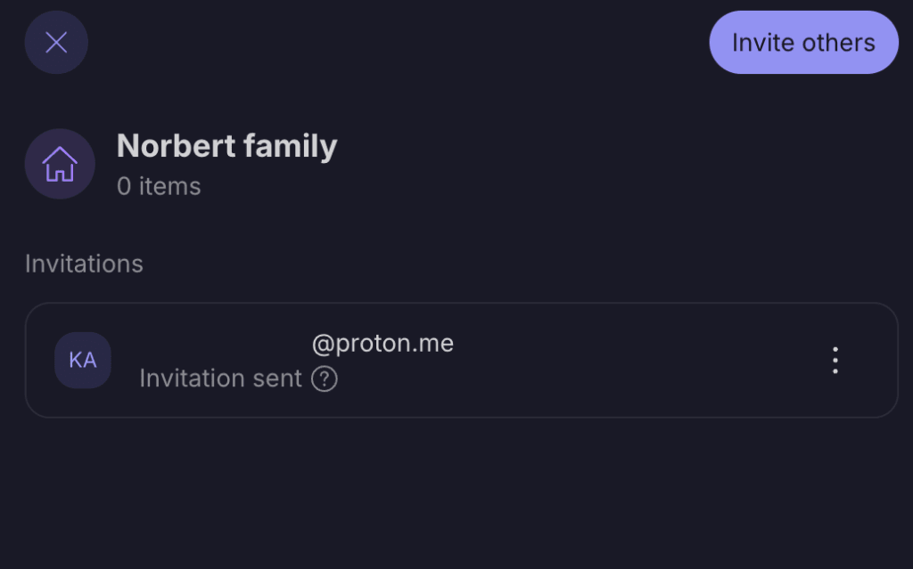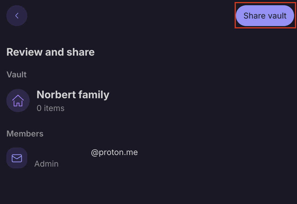 - Enter the email address(es) of the Family plan user(s) you’d like to share your vault with.