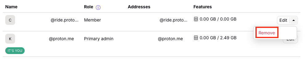- To remove a user, select Edit next to their username. You’ll see the option to Remove.