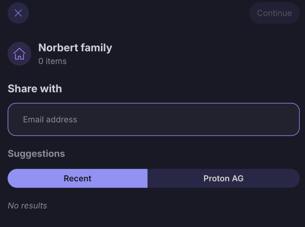 4. Enter the email address of the Family plan users you want to share your vault with.