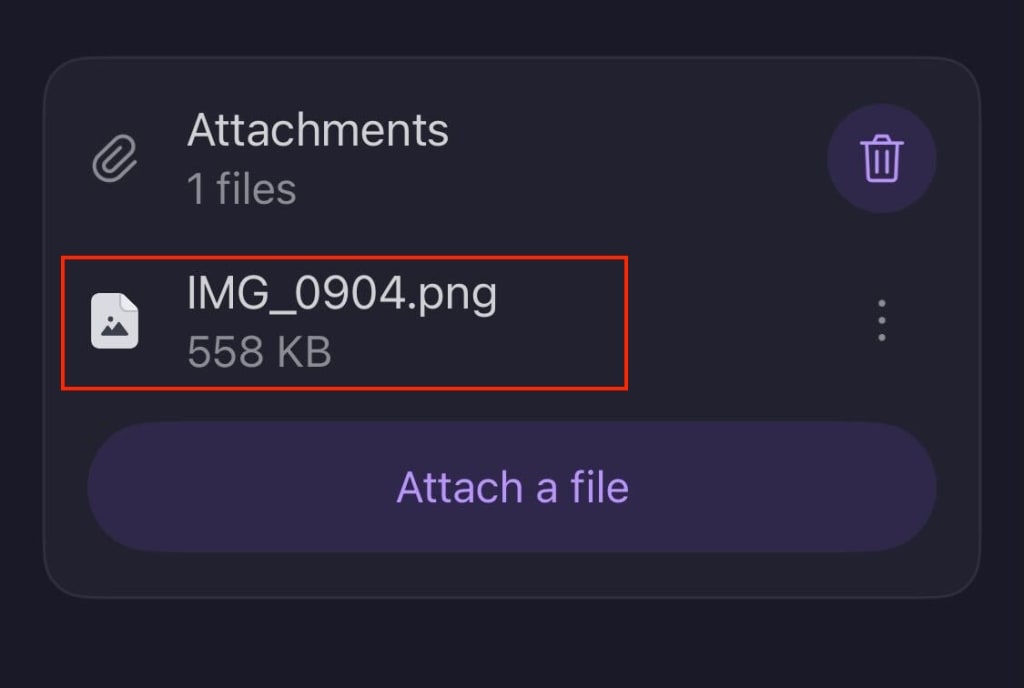 3. Once you’ve selected an attachment type, the attachment will show in the attachments section.
