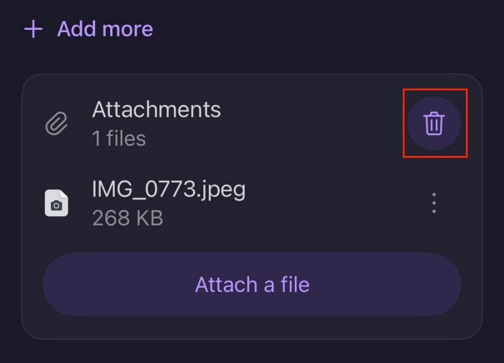 2. If you want to delete all attachments, select the trashcan icon → Delete all