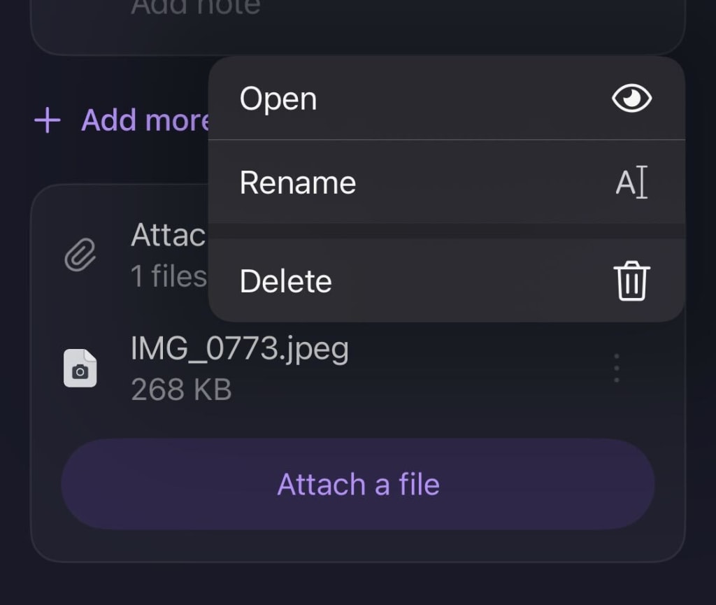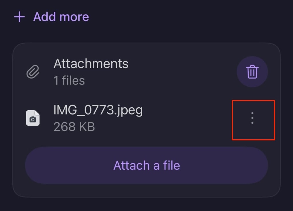 1. You can rename or delete a single attachment by selecting Edit → the three dot icon on the attachment you’d like to rename or delete