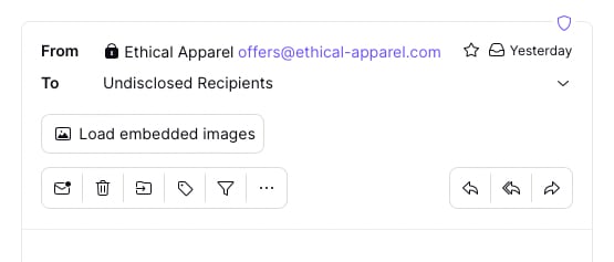 Thanks to Proton Mail’s tracker protection, senders cannot use remote images to reliably determine who, when, or where someone opens an email, so remote images are shown automatically in the emails you read.