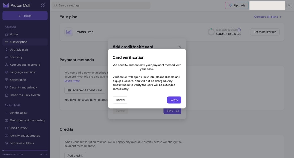 If you’re on a paid Proton subscription, keep at least one valid payment method on your account to ensure uninterrupted access to your privacy services.