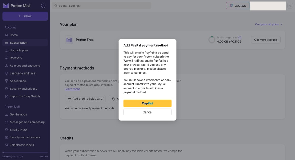- All done. Your PayPal is now linked to your Proton Account and can be used to pay for your subscription.