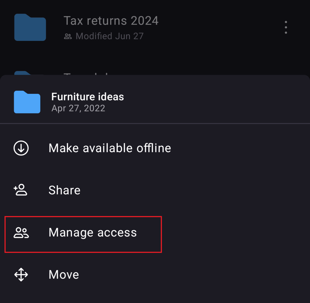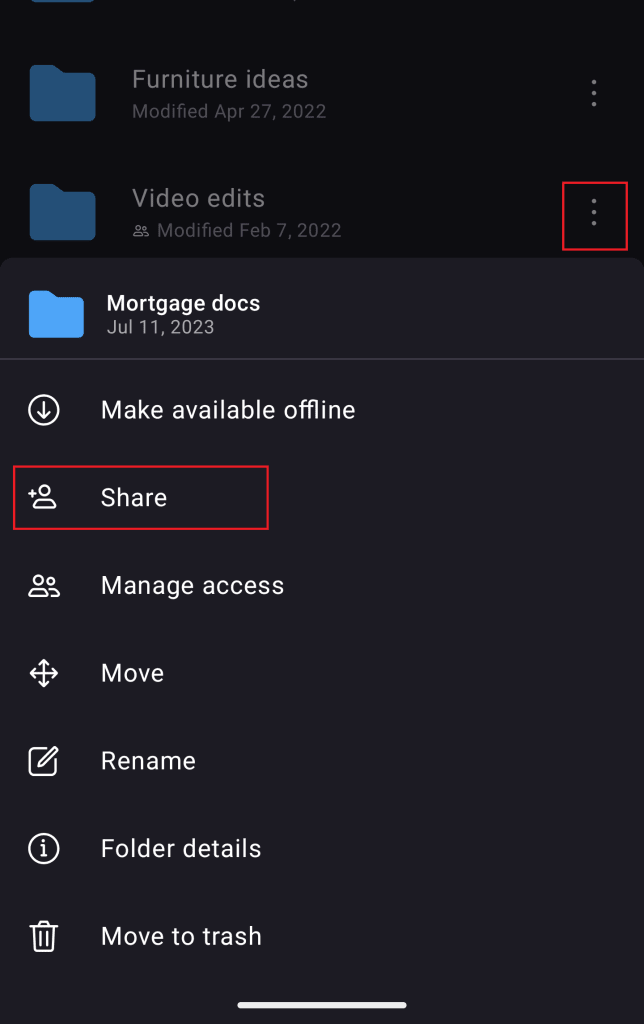 - Tap the horizontal three dots next to the file or folder you’d like to share.