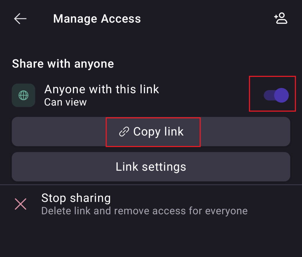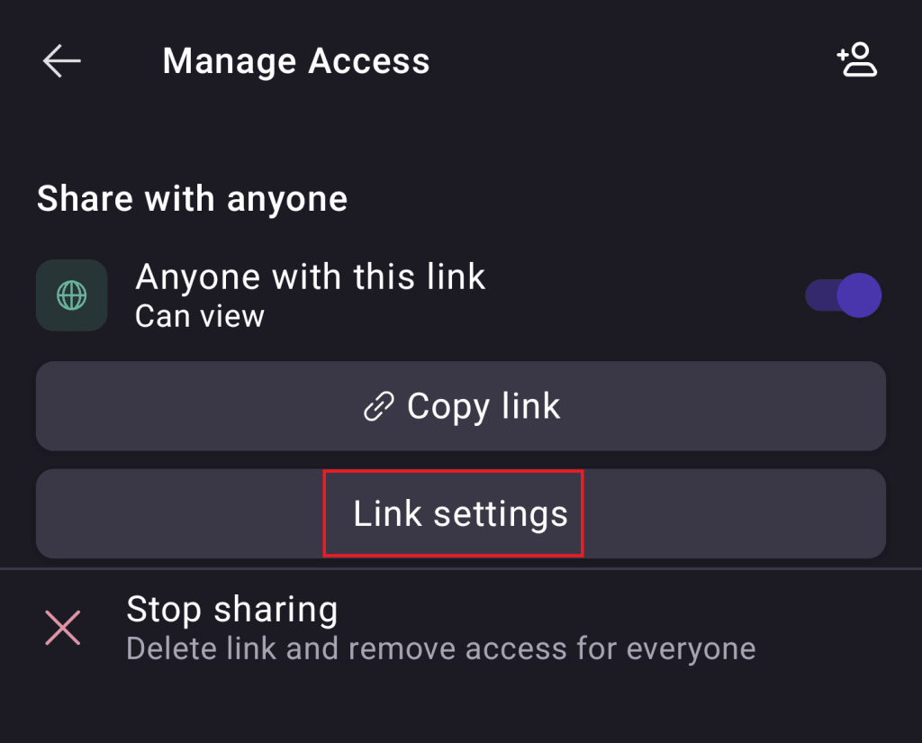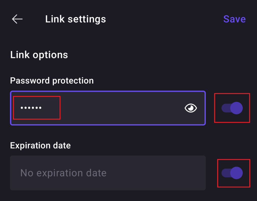 1. After creating a share link, you can add a password by tapping Link settings and toggling on Password protection.
