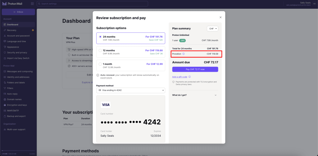 Learn how to add credit to your Proton Account