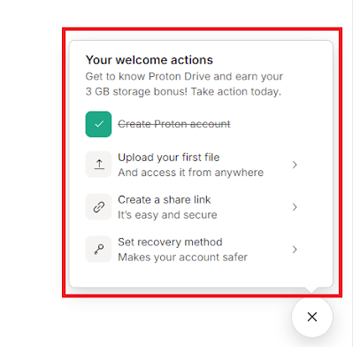 2. You’ll now be asked to perform four simple actions. If you do this, your Proton Drive storage will increase from 2 GB to 5 GB.