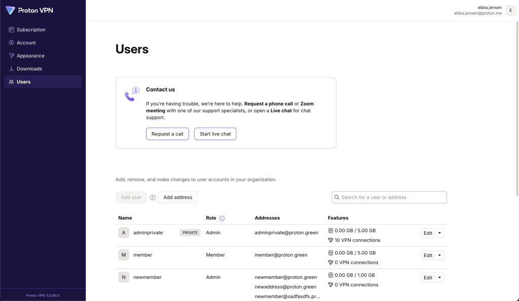 If your organization uses Proton VPN, we also offer the option to start a live chat via account.protonvpn.com (live chat is currently only available here).