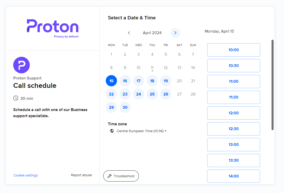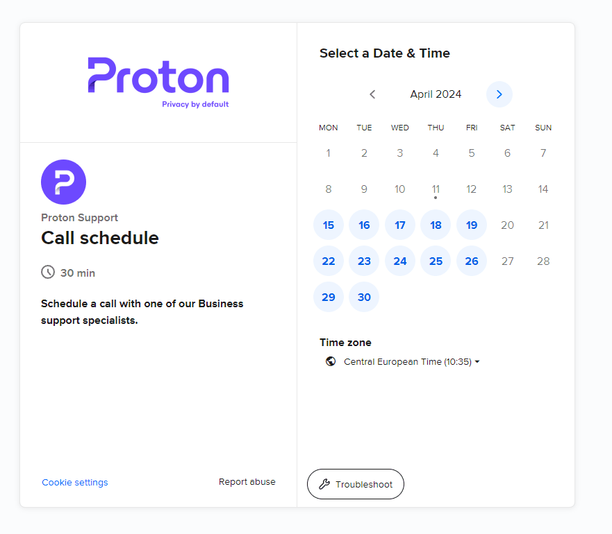 If you have an eligible Proton for Business account, you can schedule a one-to-one phone or video chat with our Support team. In this article, we’ll explain how.