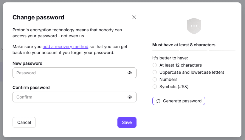 Use Proton Mail’s security checklist for new account owners to maximize your account security. You can also set account recovery methods in case you forget your Proton password.