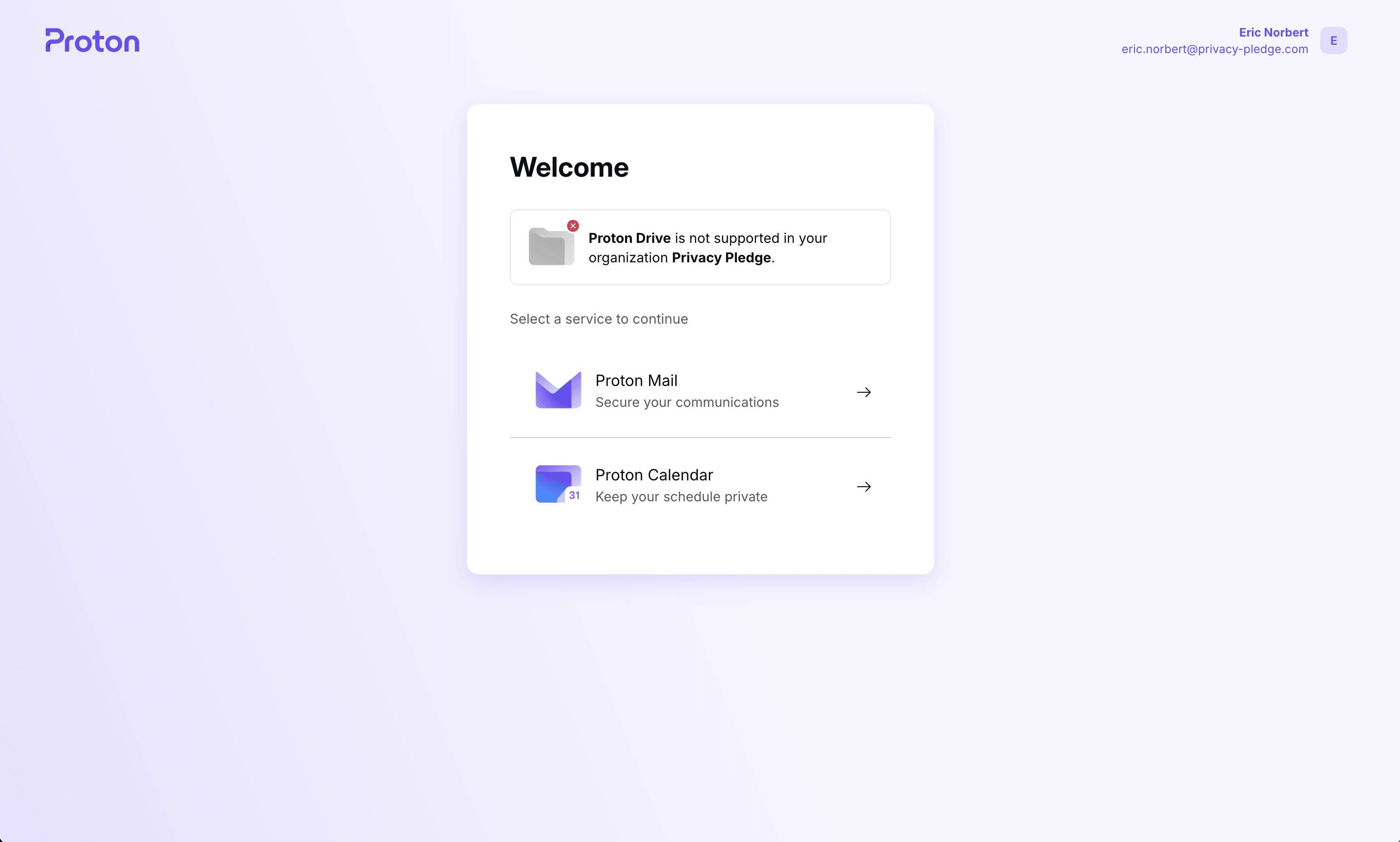 As an organization admin, you can customize your team’s digital work environment to help eliminate distractions and enforce compliance. This can include blocking access to Proton services that aren’t necessary to their day-to-day work.
