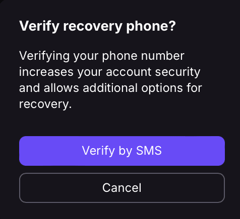 7. You’ll be sent a code by SMS to confirm that the recovery phone number belongs to you.