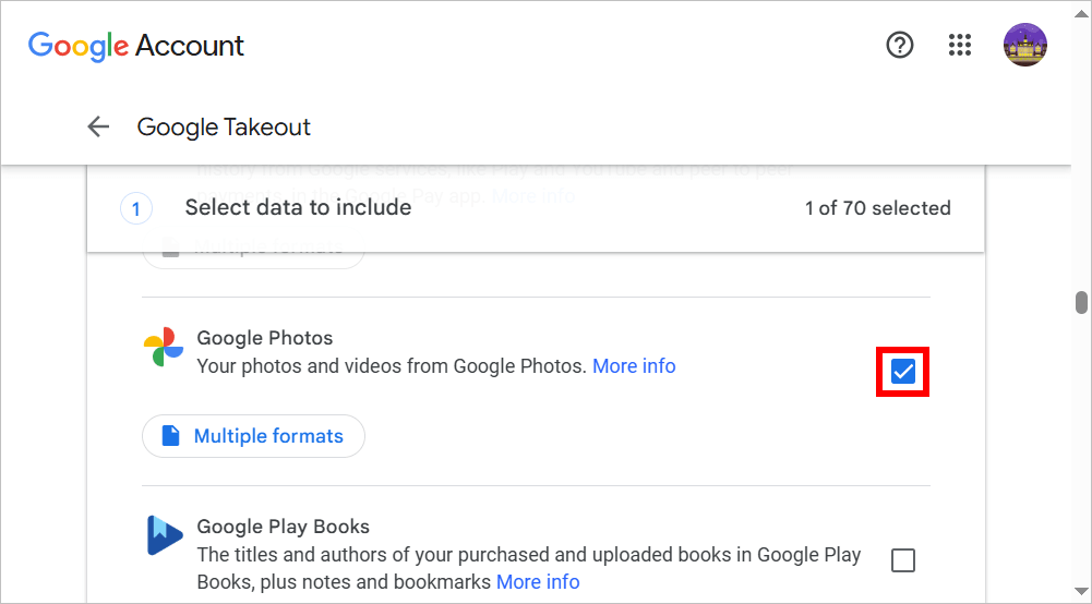 - Keep scrolling down, find Google Photos, and check the box next to it.