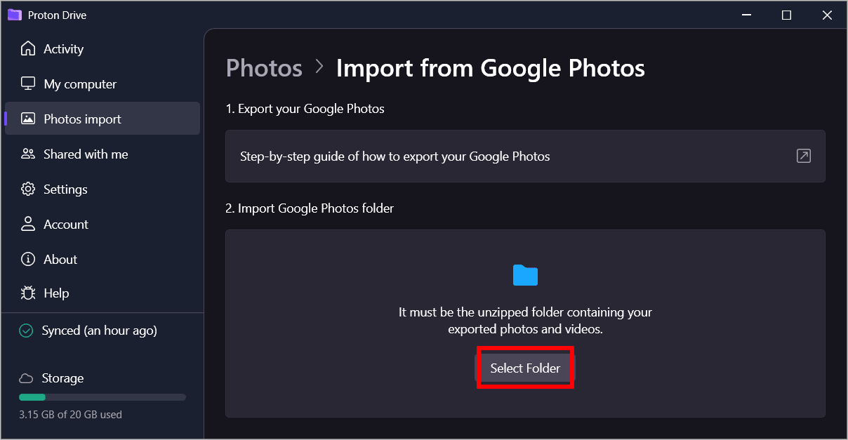 - If you’ve already downloaded the export, you may want to manually reorganize the photos into folders by year before importing. It’s a bit of a manual step, but it helps Proton Drive create cleaner albums for you.