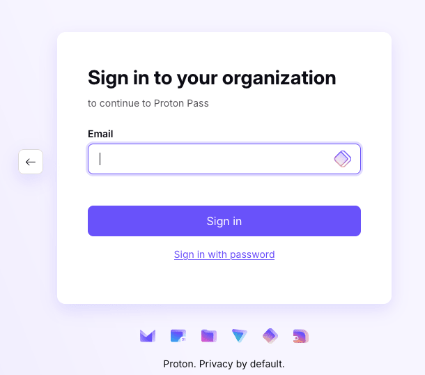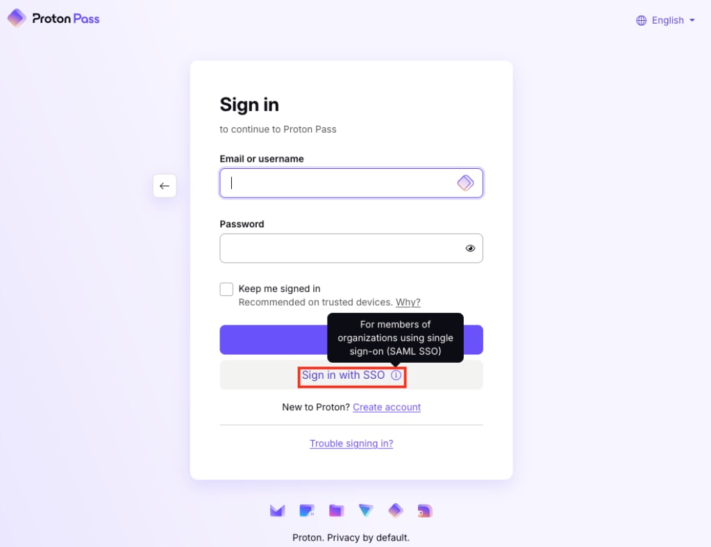 1. Click Sign in with SSO on any Proton Pass login screen.