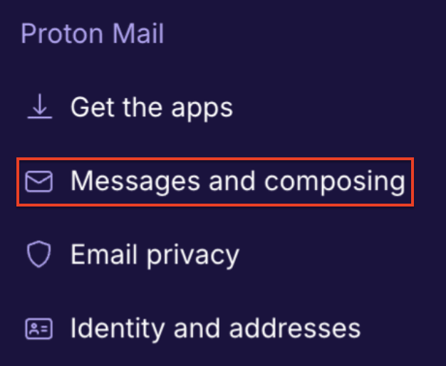 2. Click Messaging and composing in the left side panel.