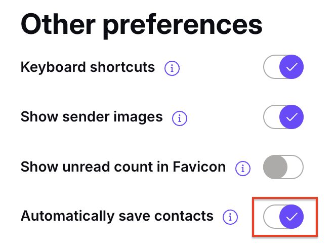 3. Under Other preferences, turn the Automatically save contacts switch on or off to enable or disable this feature.