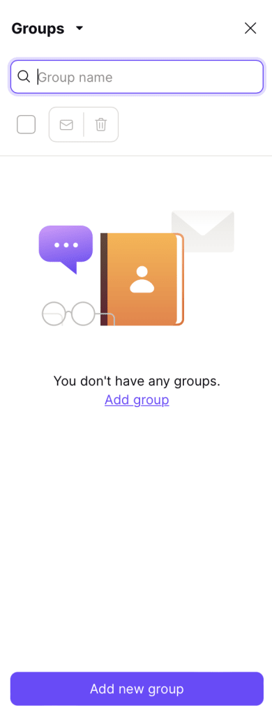 1. Use the Add new group button to create a new contact group. A new window will open, where you can name the new group, assign it a color, and add contacts to the group.