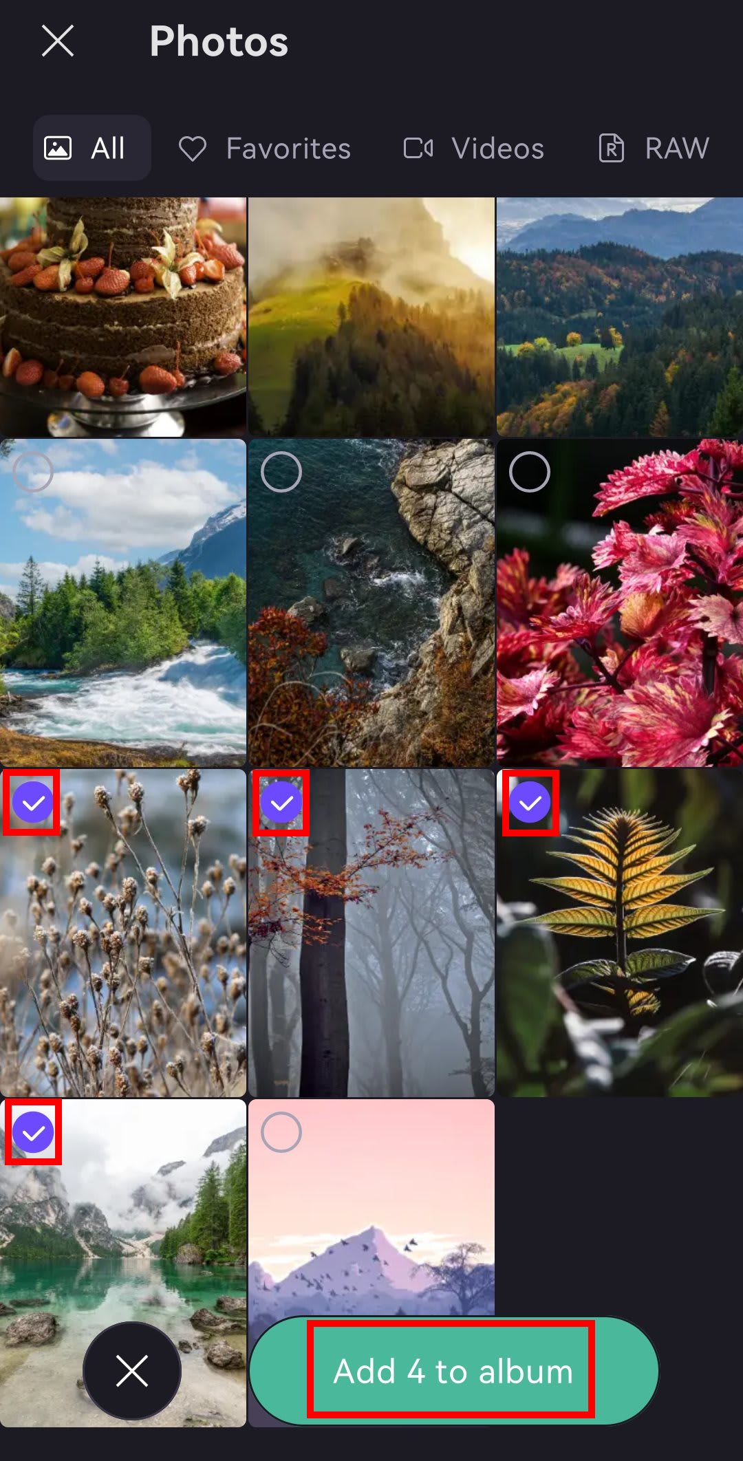 Note: Photos you add to multiple albums will not be duplicated, so they don’t take up extra storage space.
