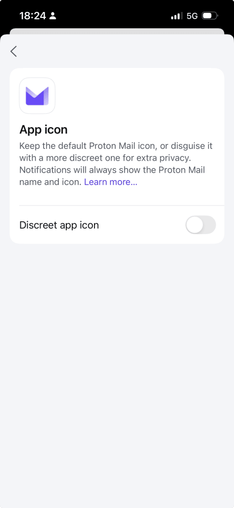 Proton Mail mobile apps allow you to replace our standard app icon with something more discreet. Disguising your app icon makes it less obvious that you’re using Proton Mail if someone looks at your home screen. Notifications will still show the Proton Mail name and icon.