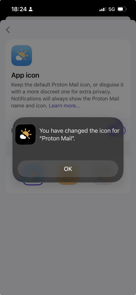 - Your selected app icon will replace the Proton Mail icon on your home screen
