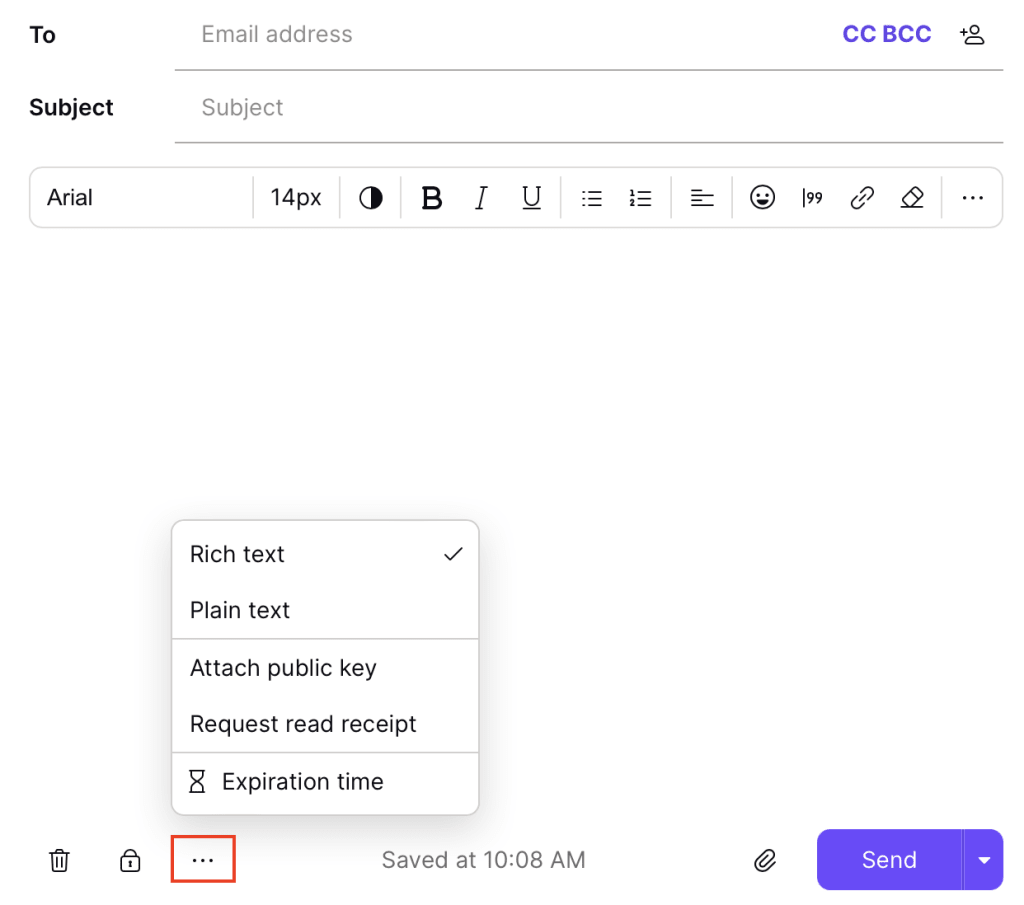 Proton Mail allows you to write your emails in normal mode or plain text mode. Normal mode refers to regular text that you can apply formatting options to, while plain text mode refers to text without any formatting options.
