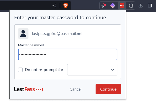 2. Enter your LastPass master password and click Continue.