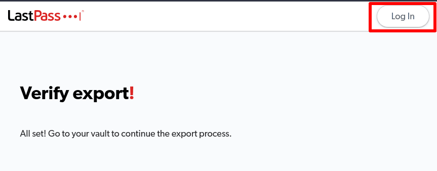 3. At the confirmation screen, log back into your LastPass Vault and to Advanced Options → Manage your vault Export again (see step 1).