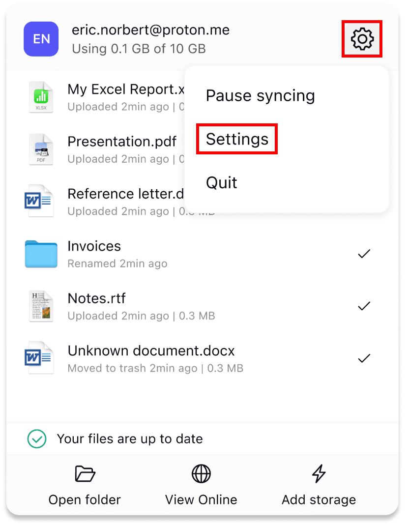 Your Proton Drive logs can be helpful when monitoring usage. This article shows how to access them in Windows and macOS apps.