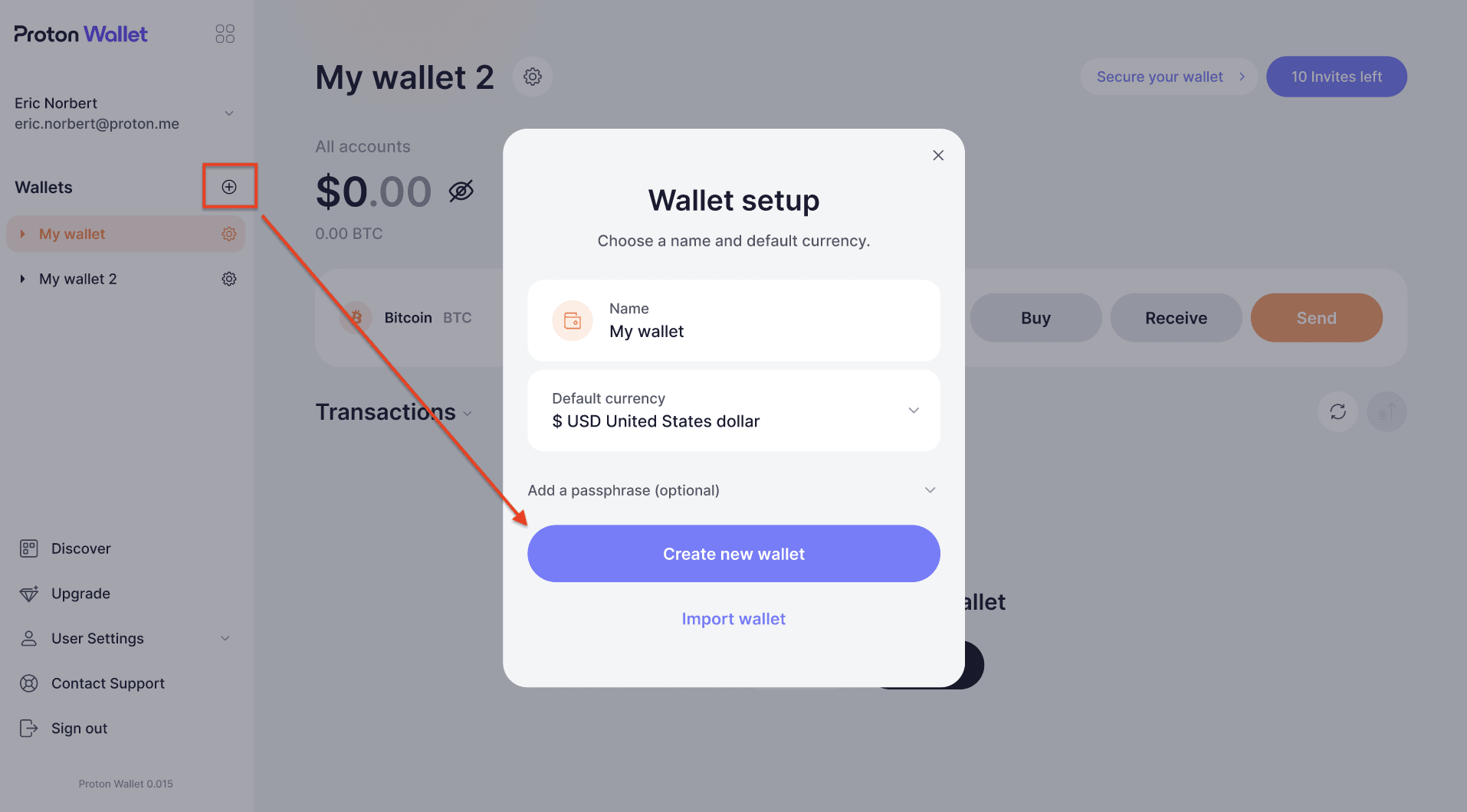 You can use this process to create as many wallets as your Proton Wallet plan allows.