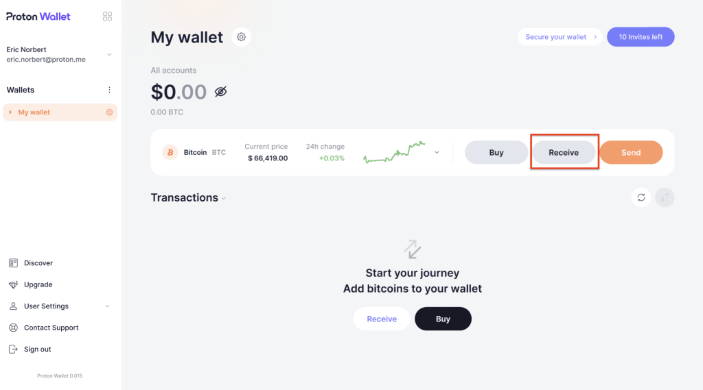 With Proton Wallet, anyone can send you BTC using your unique Bitcoin address, just like with traditional Bitcoin wallets. We support this standard method alongside our innovative Bitcoin via Email feature for a simpler experience.