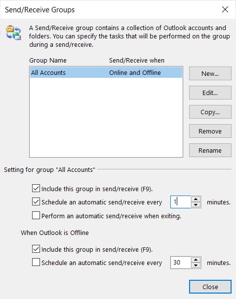 Go to the Send/Receive tab, click on Send/Receive Groups → Define Send/Receive groups.