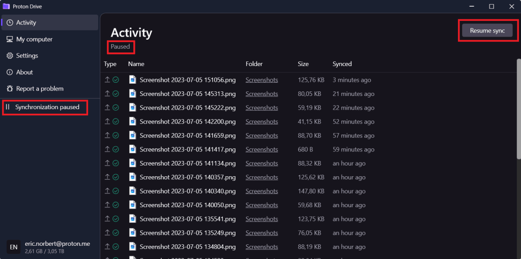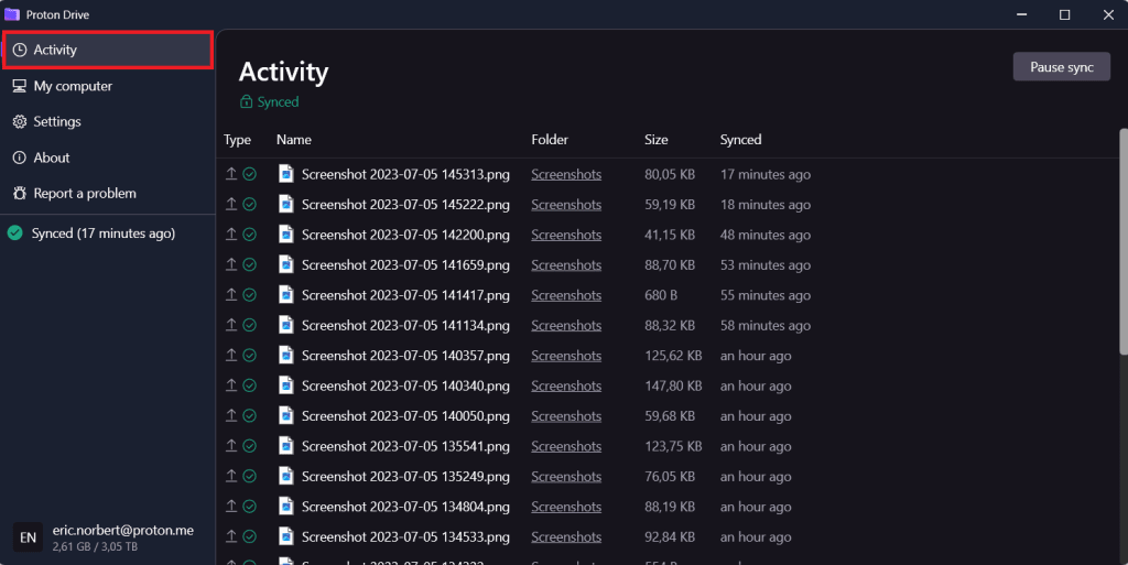 Proton Drive makes it easy to track if your files have been successfully synced to the cloud.