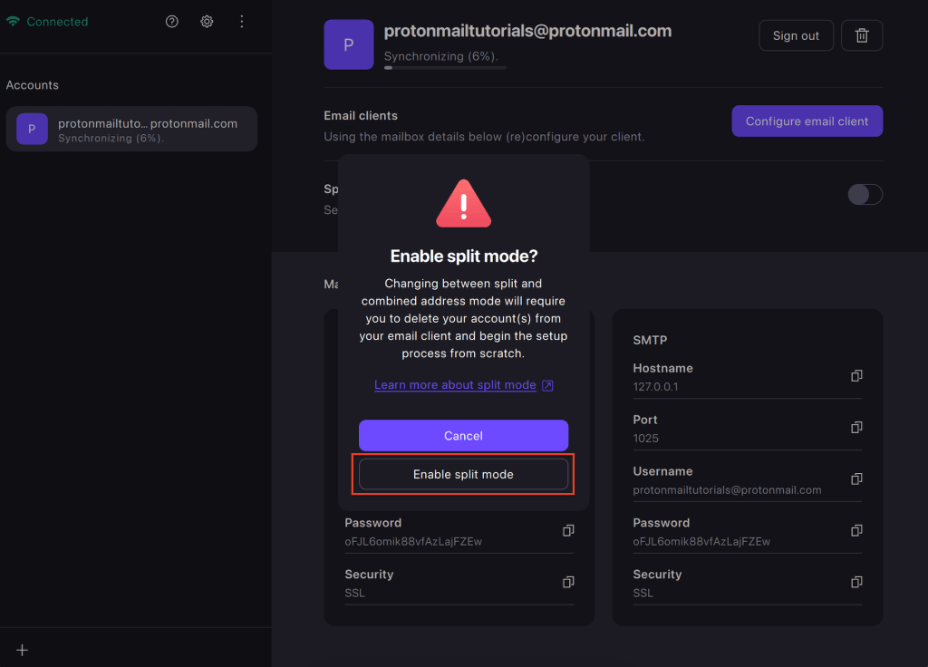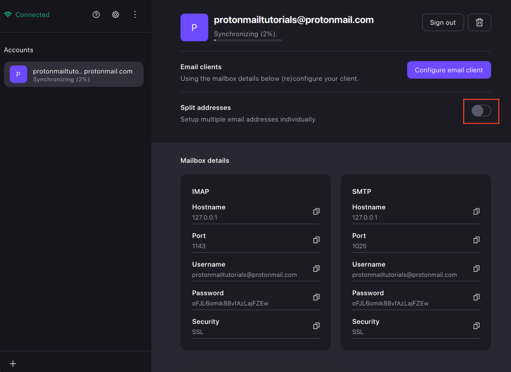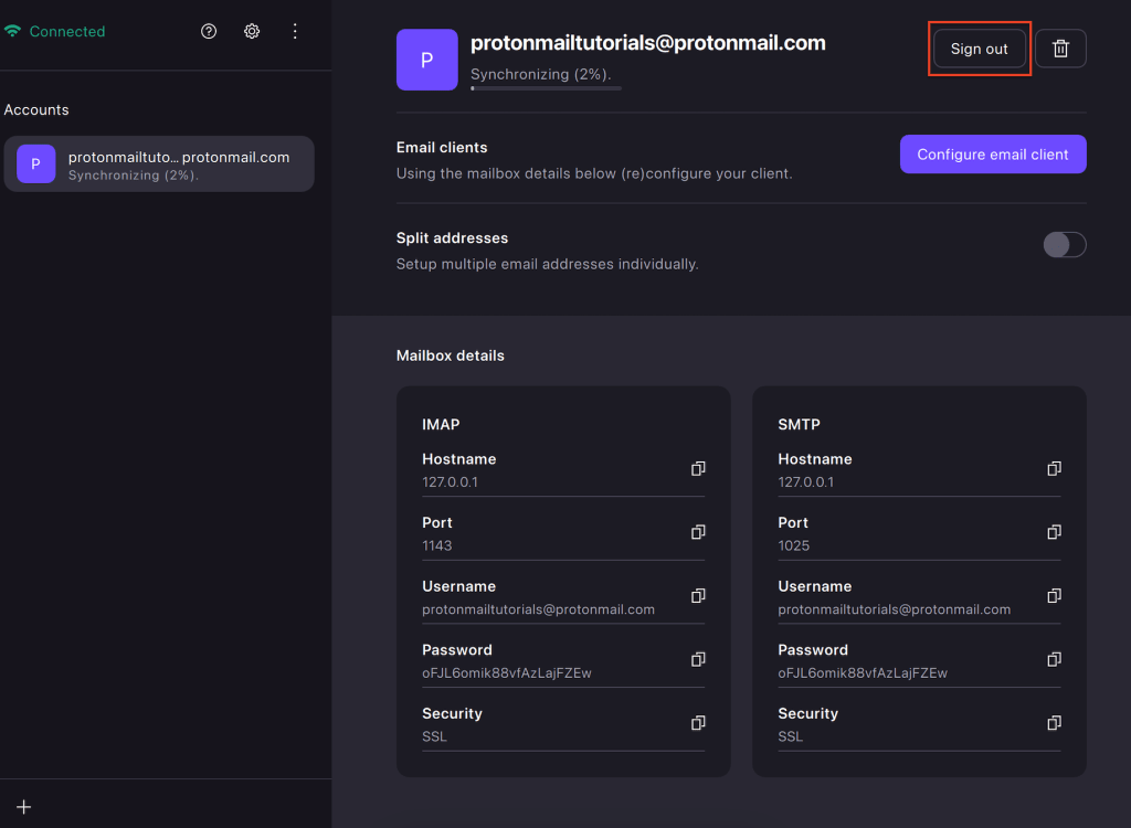 2. Add your account(s) to Proton Mail Bridge.