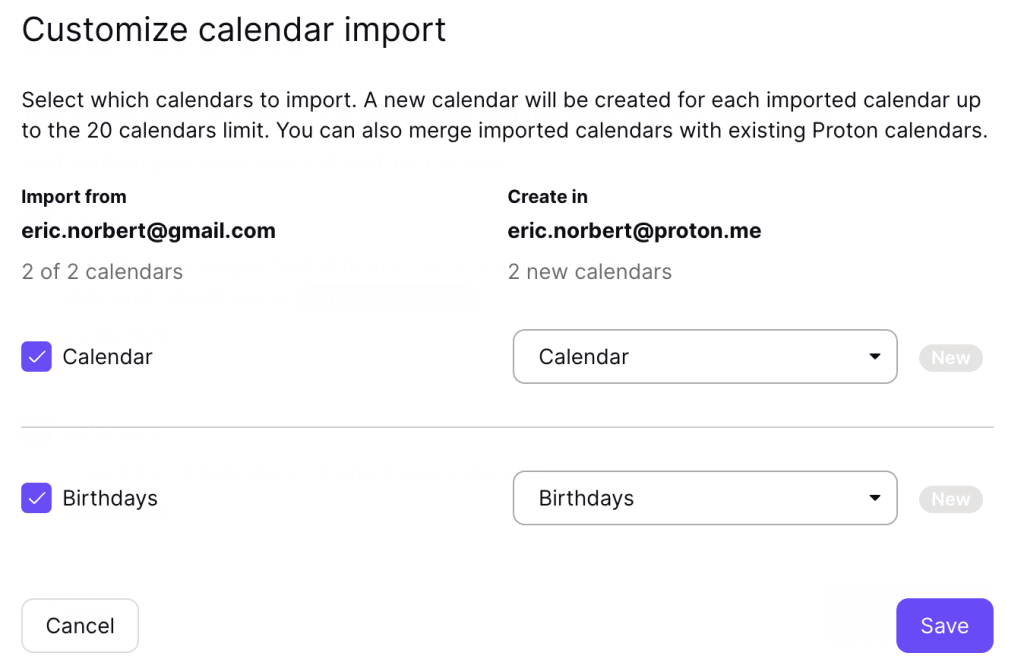 By default, Easy Switch will create a new calendar in Proton Calendar when you import a calendar.