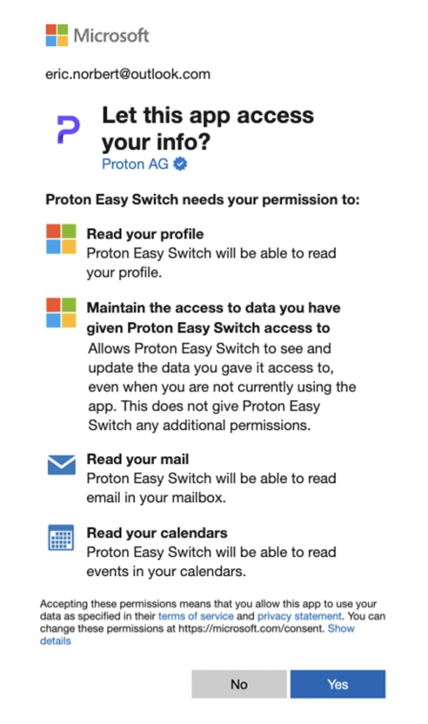 This allows Proton Mail to access your data so that we can import it into your Proton Mail account.