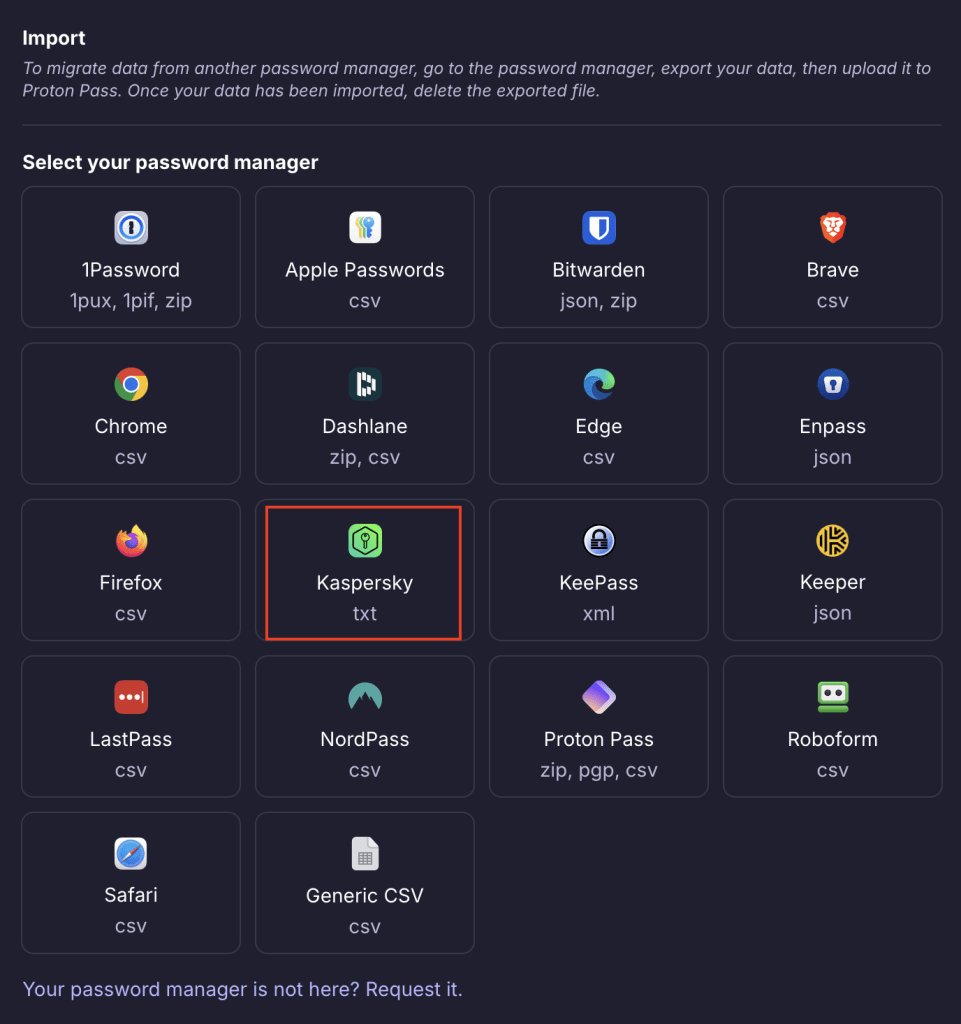 How to import from Kaspersky Password Manager to Proton Pass